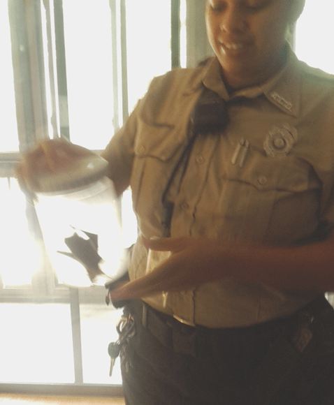 The photos show a “jarred” Carlos in Shannon Williams’s custody, awaiting what in effect will be capital punishment for the trespass—a trip down to state health department in Richmond, where his head will be sliced off and he’ll be autopsied and studied for rabies. The first picture is blurry in places because she shook Carlos up at my request. We wanted him to open his wings at least slightly for the camera in my Nexus 10 tablet, and he obliged—thanks, Carlos. And also for going Number 2 in the jar (no bat goo smelled elsewhere, anyway). Please forgive me for calling in the Animal Welfare League rather than simply letting you fly off.